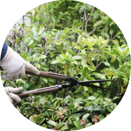 作業時間内で草取りや隣家への迷惑を防止するための植木の枝切りを行います。